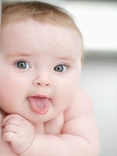 Baby boy making a funny face