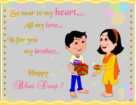 Bhaiya Dooj Messages We may be far from each other but you are always in heart. On the occasion of Bhaidooj cherishing the fond memories we spent together. loveliest